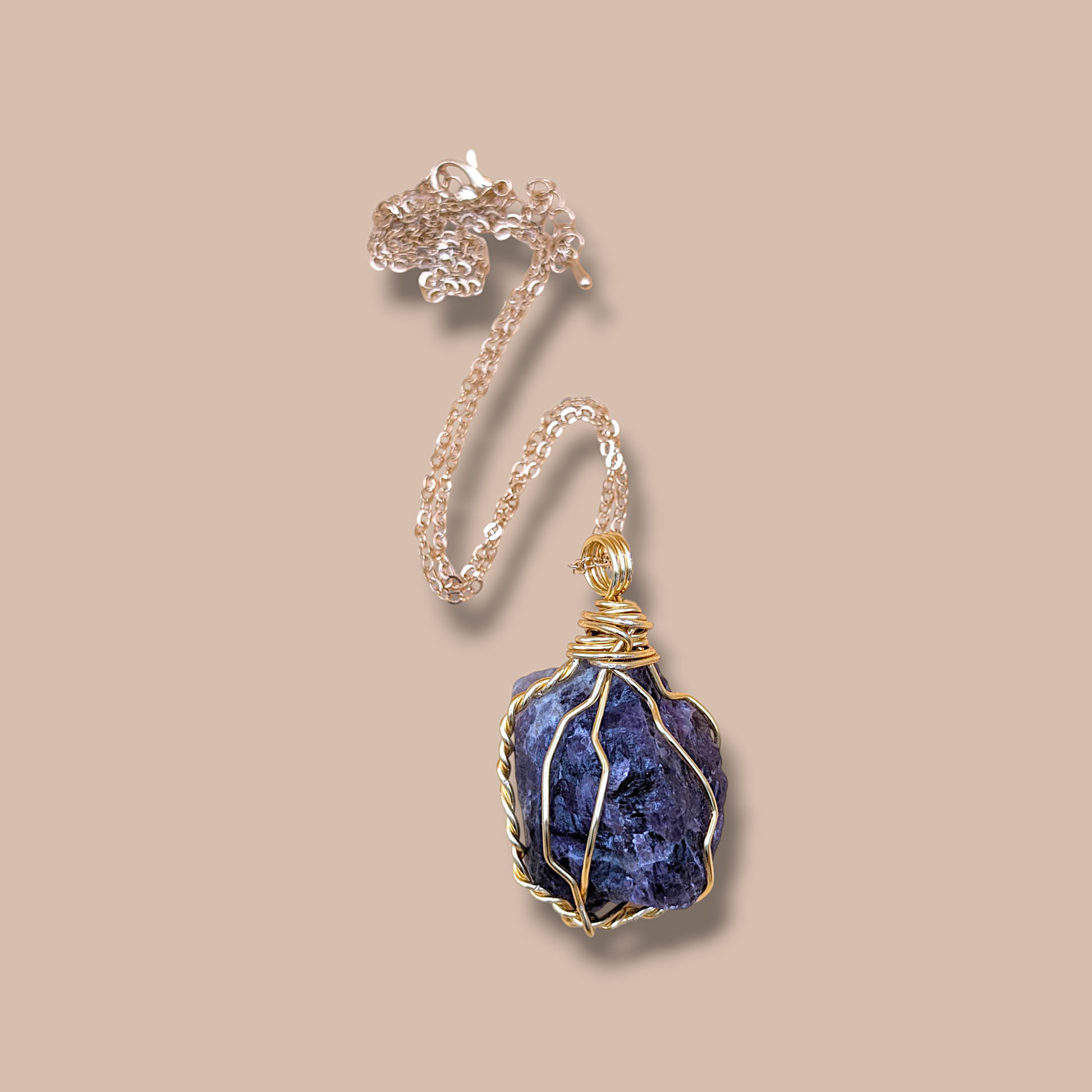 Meet your new go-to for chill energy and dreamy vibes π This one-of-a-kind pendant features a raw amethyst crystal hand-wrapped in golden copper wire to turn up the intuition and turn down the stress.
