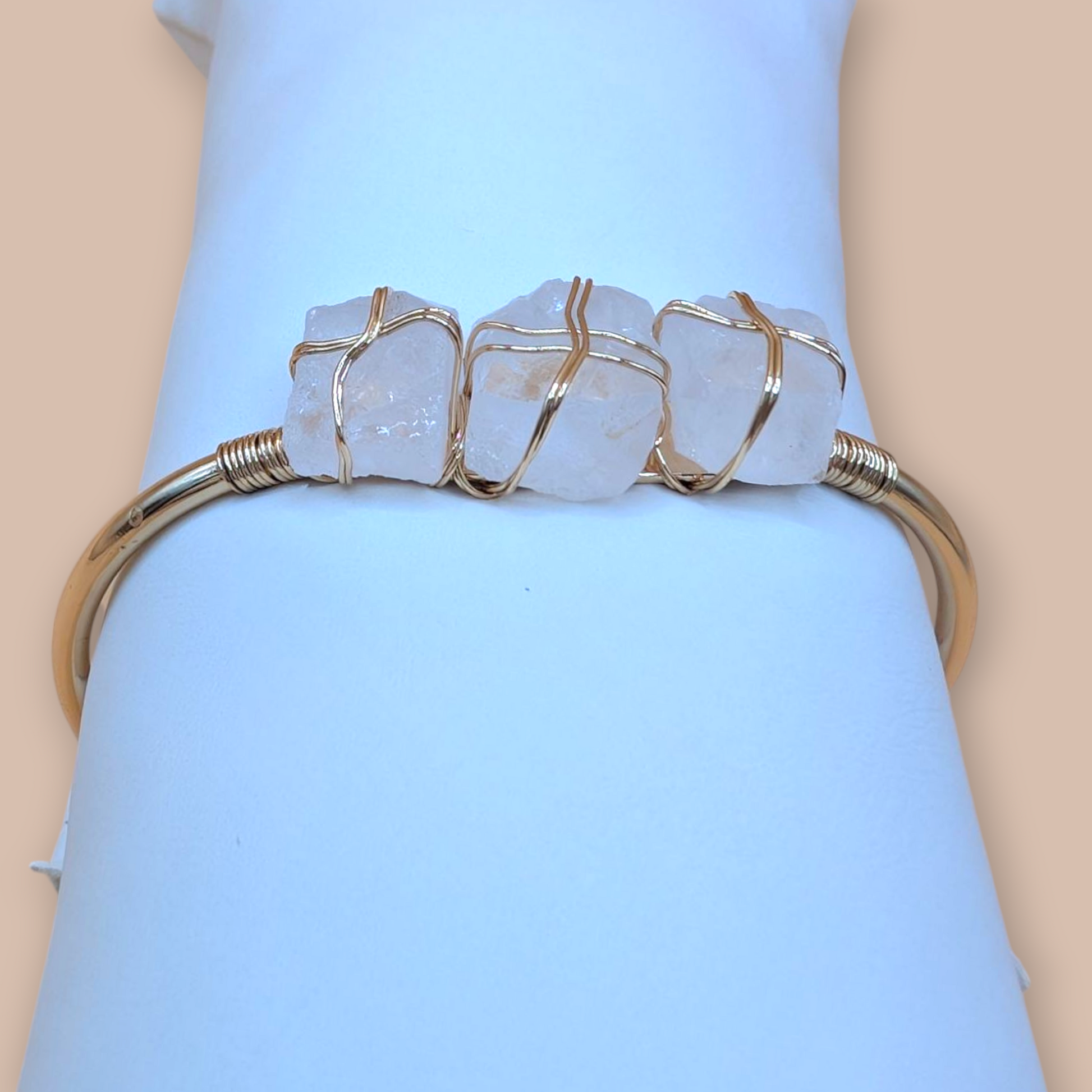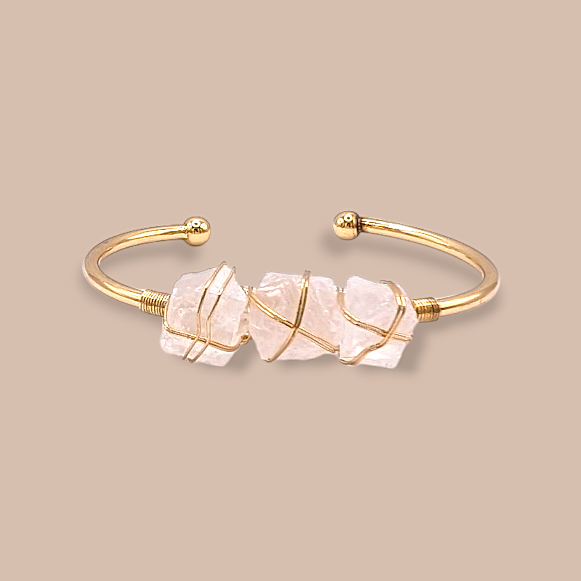 This cuff features three hand-wrapped clear quartz points, symbolizing alignment across your mind, body, and spirit. Known as the Master Healer, clear quartz enhances clarity, amplifies energy, and helps you stay centered in your truth.