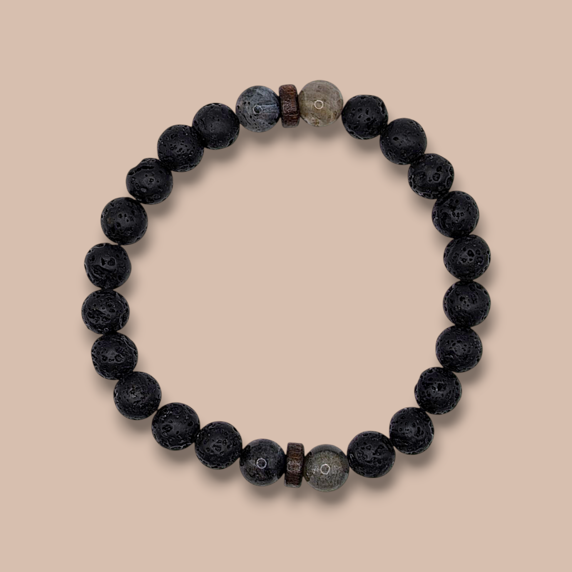 Raw and grounding, this bracelet blends the strength of Lava Stone, the mysticism of Labradorite, and the earthy warmth of natural wood. Lava Stone carries fire energy and is perfect for diffusing essential oils, while Labradorite is known as the stone of intuition, protection, and transformation. Together, they create a powerful piece that connects you to both earth and sky ā balanced, rooted, and ready for anything.