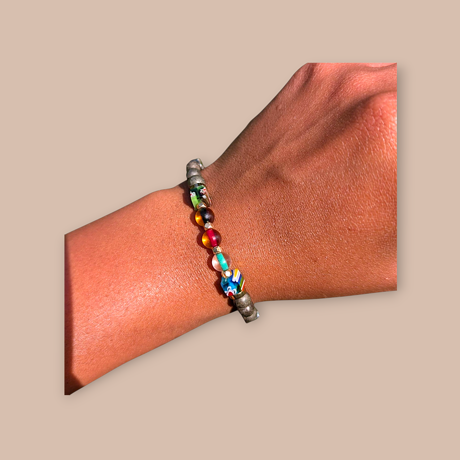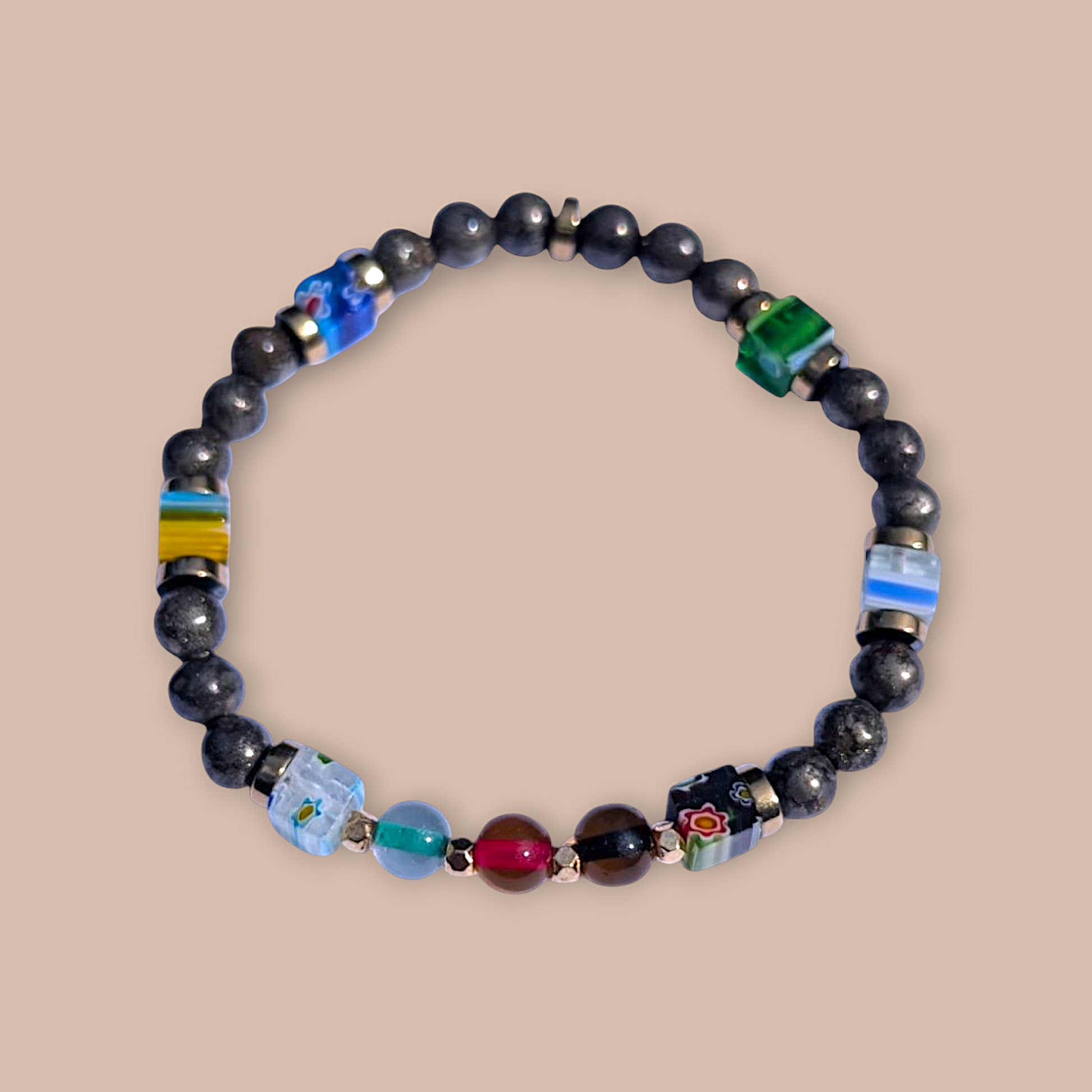 Shine bright and stay grounded with this bold beauty! Made with 6mm Pyrite beads for confidence and protection, plus Hematite accents to keep your energy balanced. We added eccentric cubed beads for a playful pop of color—because your style should be as vibrant as your spirit!