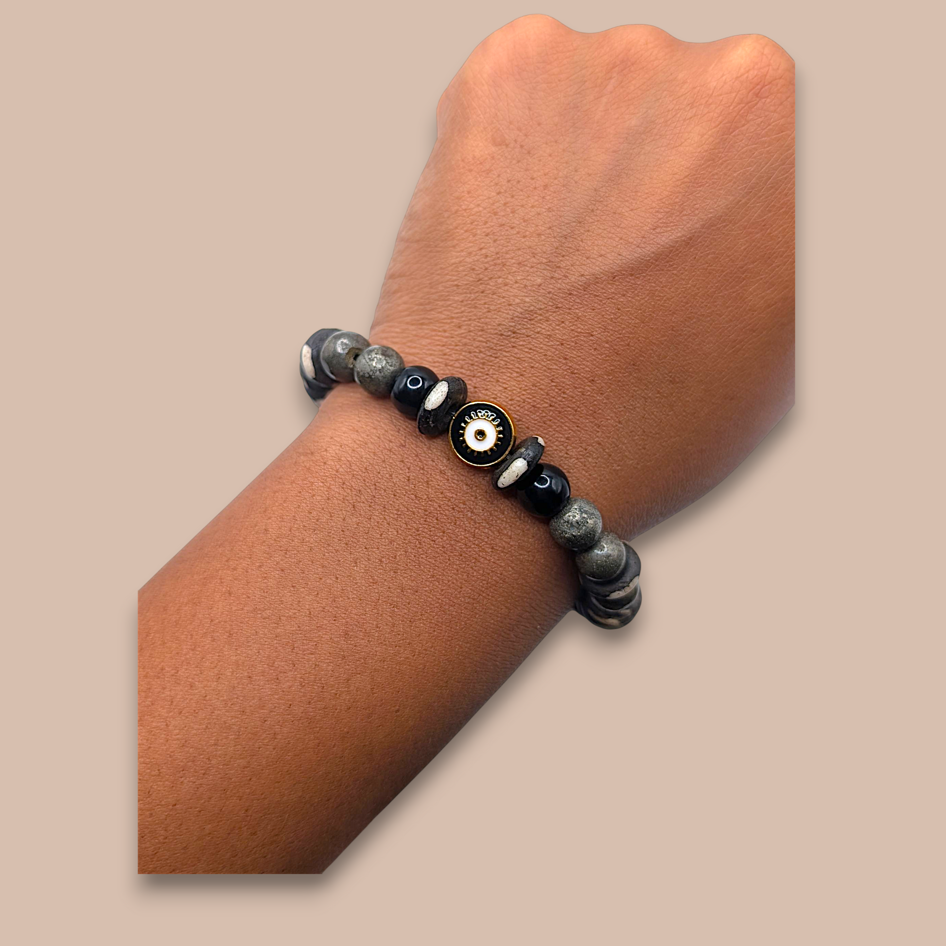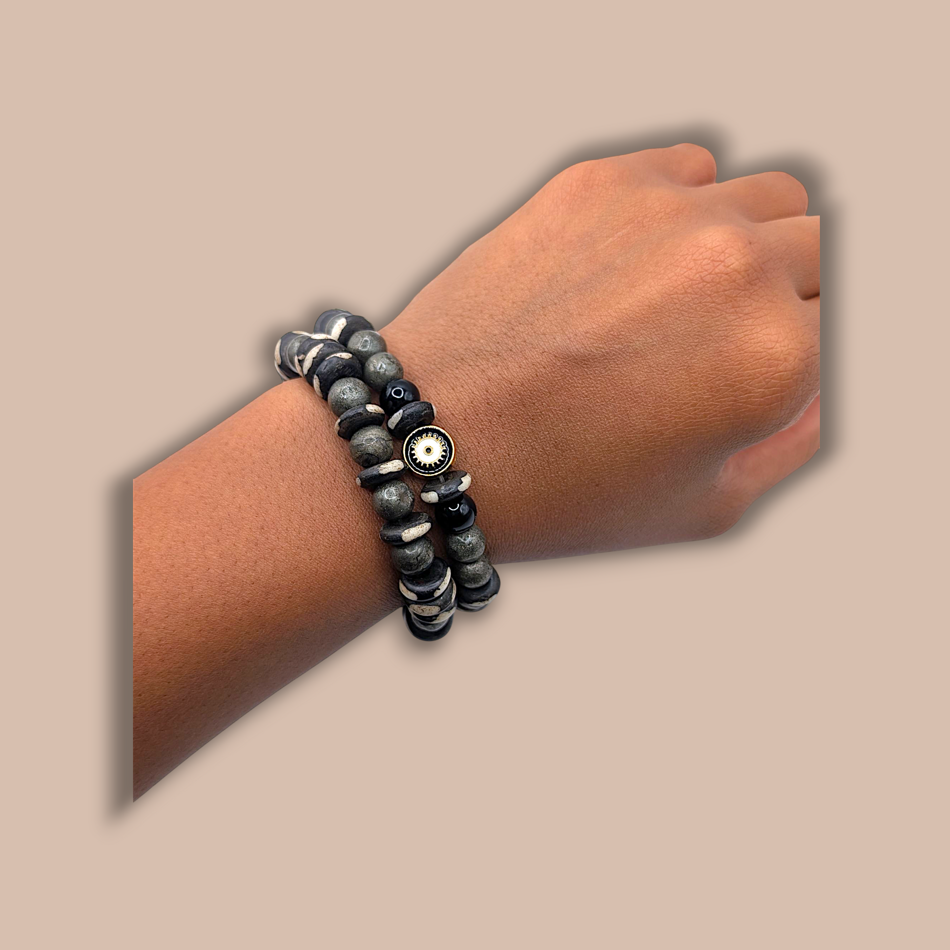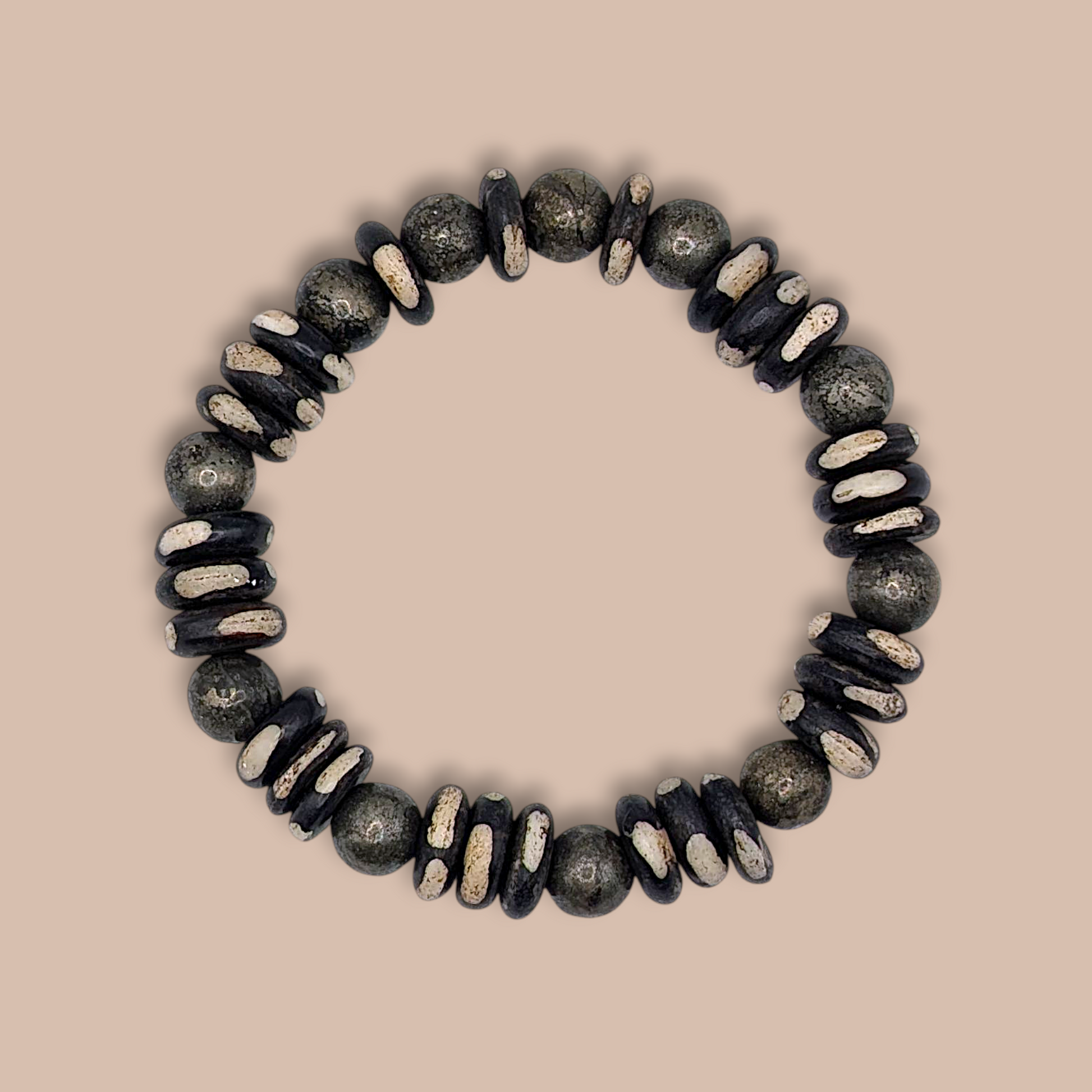 Grounded yet bold, this pyrite bracelet set is all about strength, balance, and effortless style. Pyrite, known as “Fool’s Gold,” carries protective energy and a touch of earthy shimmer, while the natural contrast beads add texture and depth. Wear them together for a stacked look or solo for a minimalist vibe.